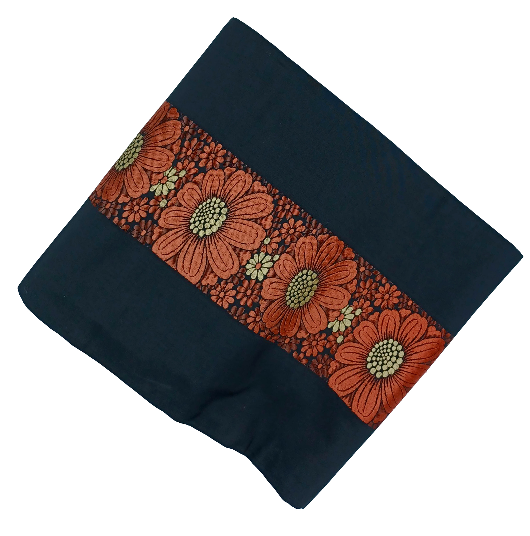 Black with Chrysanthemums Middle Stripe Antique Nagoya Obi. Obi in this category are circa Meiji, Taisho, or early Showa Periods. SOLD AS-IS AND WITH ALL FAULTS.