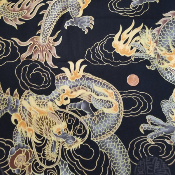 Flying Dragons on Black Japanese Quilting Cotton