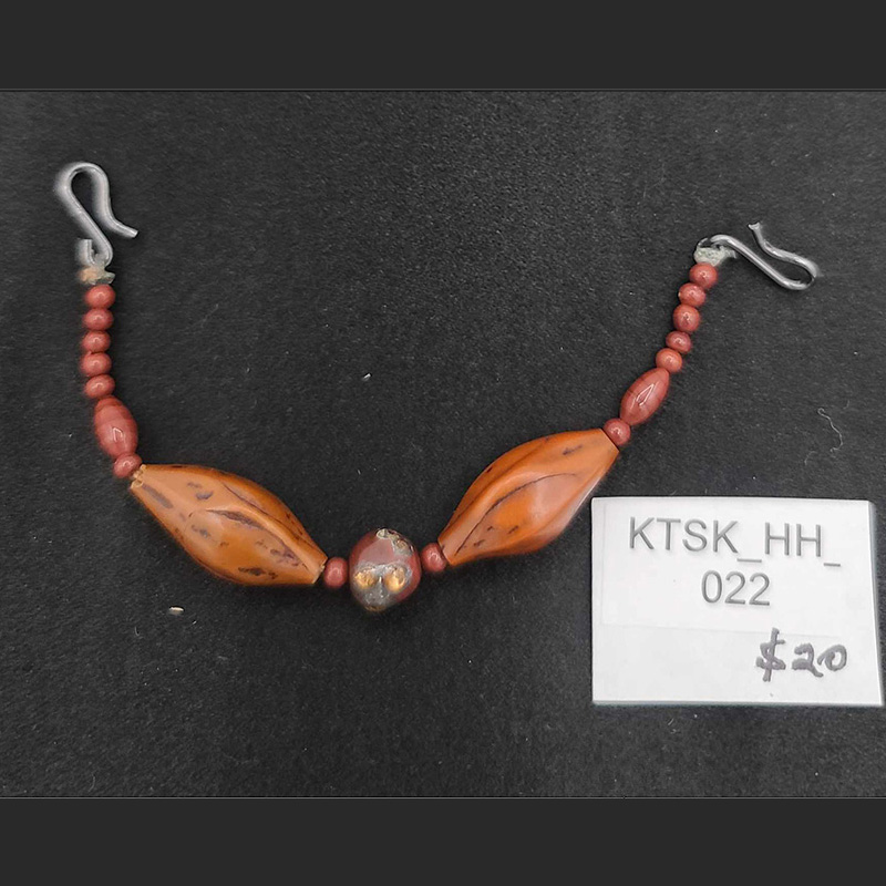 Haori Himo with Caramel Tones and Pretty Bead. Haori Himo are detachable strings, chains, and/or cords that are loosely attached or pinned into the lapels of your haori kimono jacket. If one becomes dirty from wear, or if you would like to accessorize your look with different bling, simply remove it and replace with another one. Haori himo can add that nice finishing touch to your ensemble, whether you wear your haori with kimono or western-style clothing!