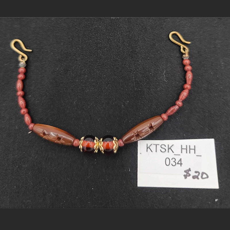 Haori Himo with Reds and Stars. Haori Himo are detachable strings, chains, and/or cords that are loosely attached or pinned into the lapels of your haori kimono jacket. If one becomes dirty from wear, or if you would like to accessorize your look with different bling, simply remove it and replace with another one. Haori himo can add that nice finishing touch to your ensemble, whether you wear your haori with kimono or western-style clothing!