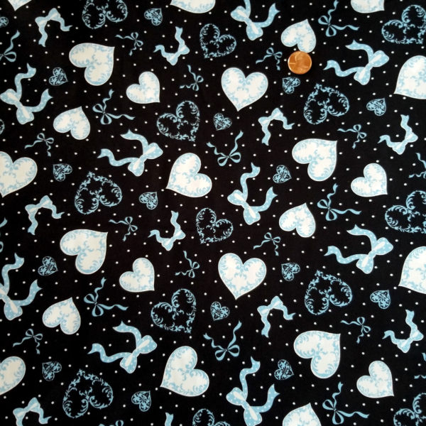 Hearts and Bows in Black and Blue Japanese Quilting Cotton