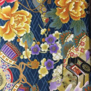 It’s raining men! Or at least it will be when you dump this box out and revel in the amazing fabrics. A lot of men’s kimono are made of wool and tsumugi, both very high quality fabrics. Some cotton may be included. Most boxes contain at least 1 jacket and a few obi that can be folded lengthwise and tied into traditional ties like the kai-no-kuchi.
