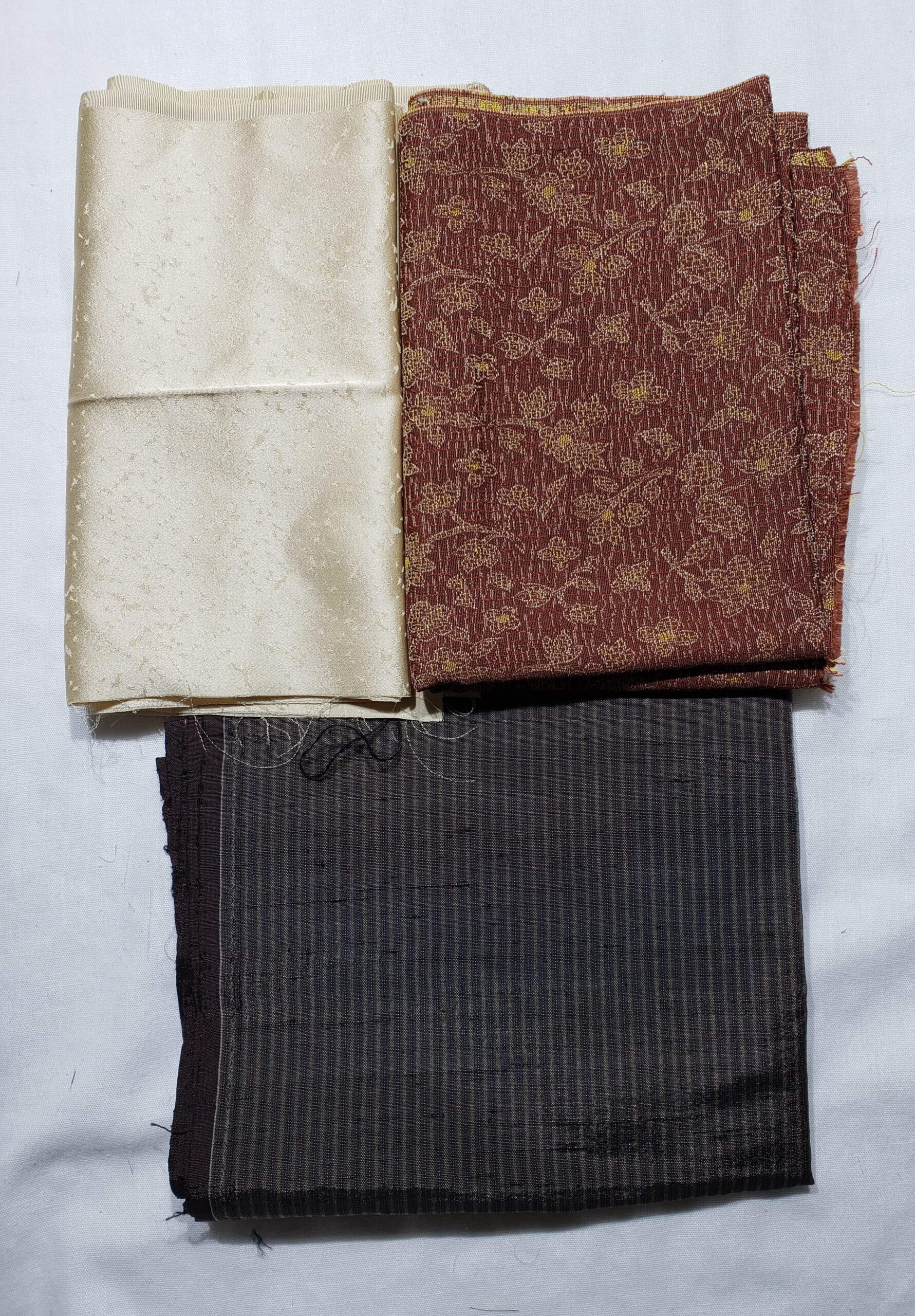 This bundle of vintage silk is perfect for small crafts, especially tsumami kanzashi, as well as doll clothes, pouches and purses, patchwork, and more. Japanese silk is the best of the best among all fabric in the world–no other fabric compares, and now you have the opportunity to choose the best at reasonable prices. The fabric is mostly medium to light weight, but more sturdy than the lightweight silk bundles. It was cut by hand from vintage kimono and kimono jackets, and it is graded at either A (excellent) or B (very good) condition. Any flaws allowed are very minor.