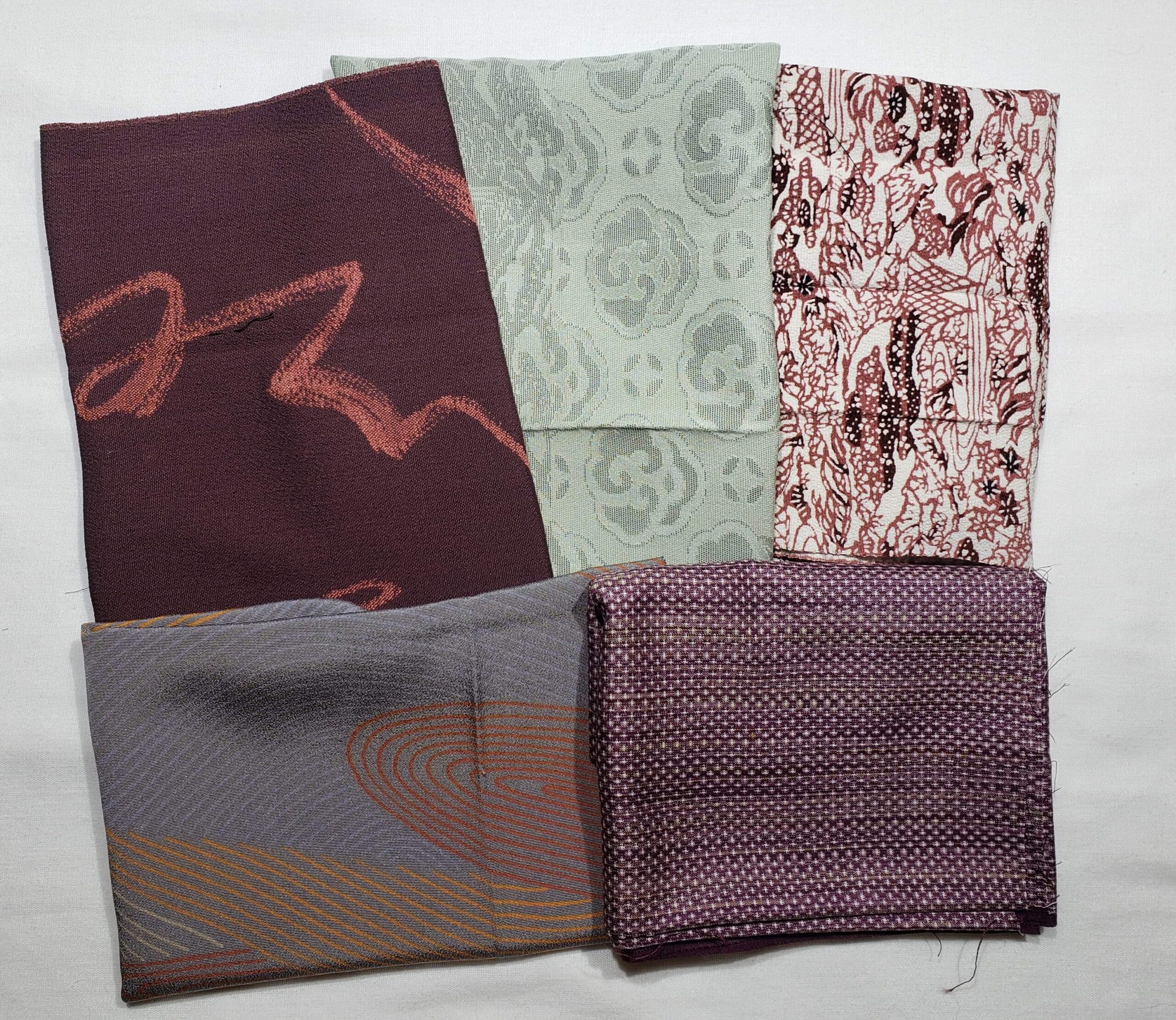 This bundle of vintage silk is perfect for small crafts, especially tsumami kanzashi, as well as doll clothes, pouches and purses, patchwork, and more.  Japanese silk is the best of the best among all fabric in the world–no other fabric compares, and now you have the opportunity to choose the best at reasonable prices.  The fabric is mostly medium to light weight, but more sturdy than the lightweight silk bundles.  It was cut by hand from vintage kimono and kimono jackets, and it is graded at either A (excellent) or B (very good) condition.  Any flaws allowed are very minor.