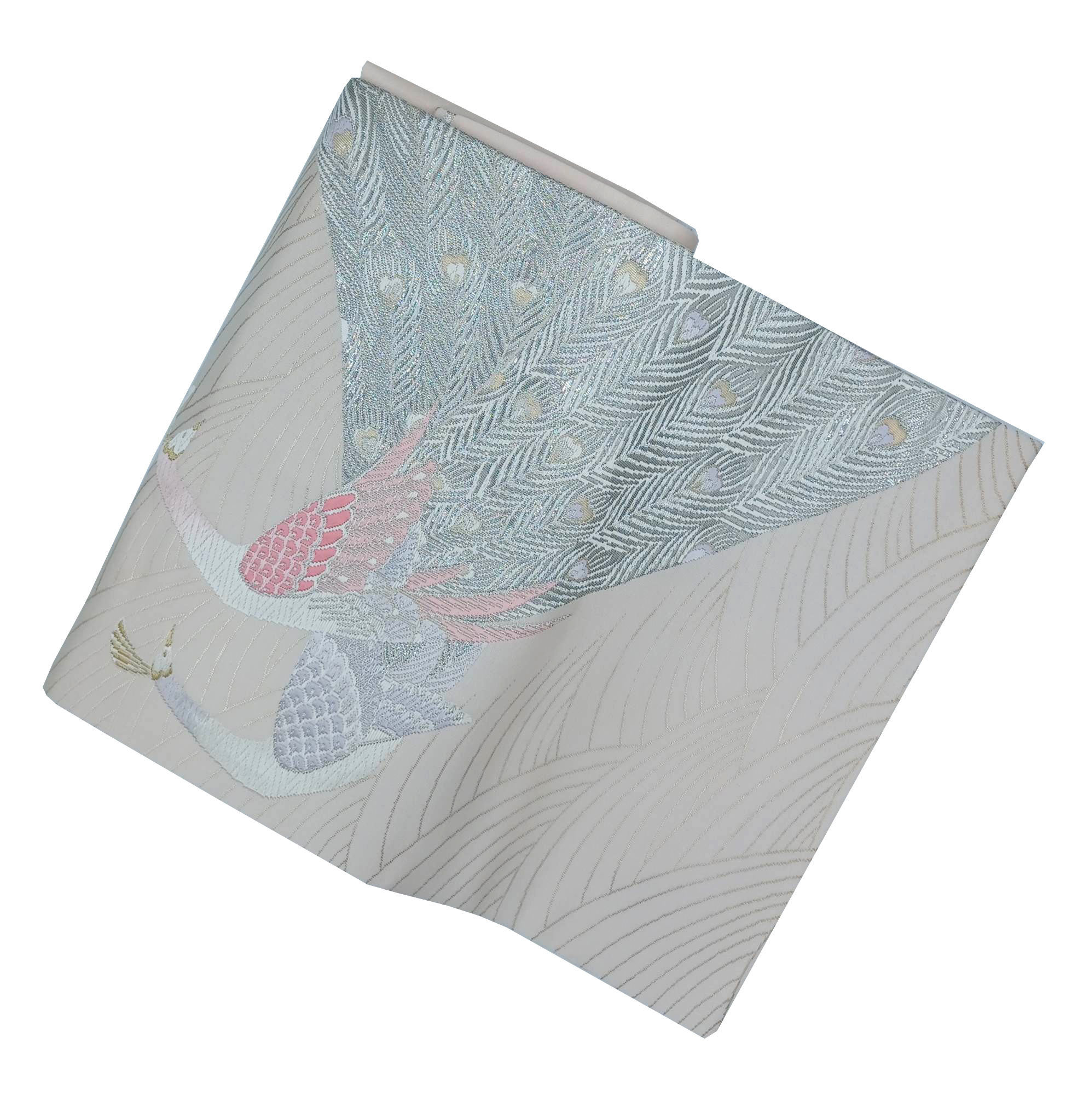 / Perfectly Peacock Silver and Pink Nagoya Obi