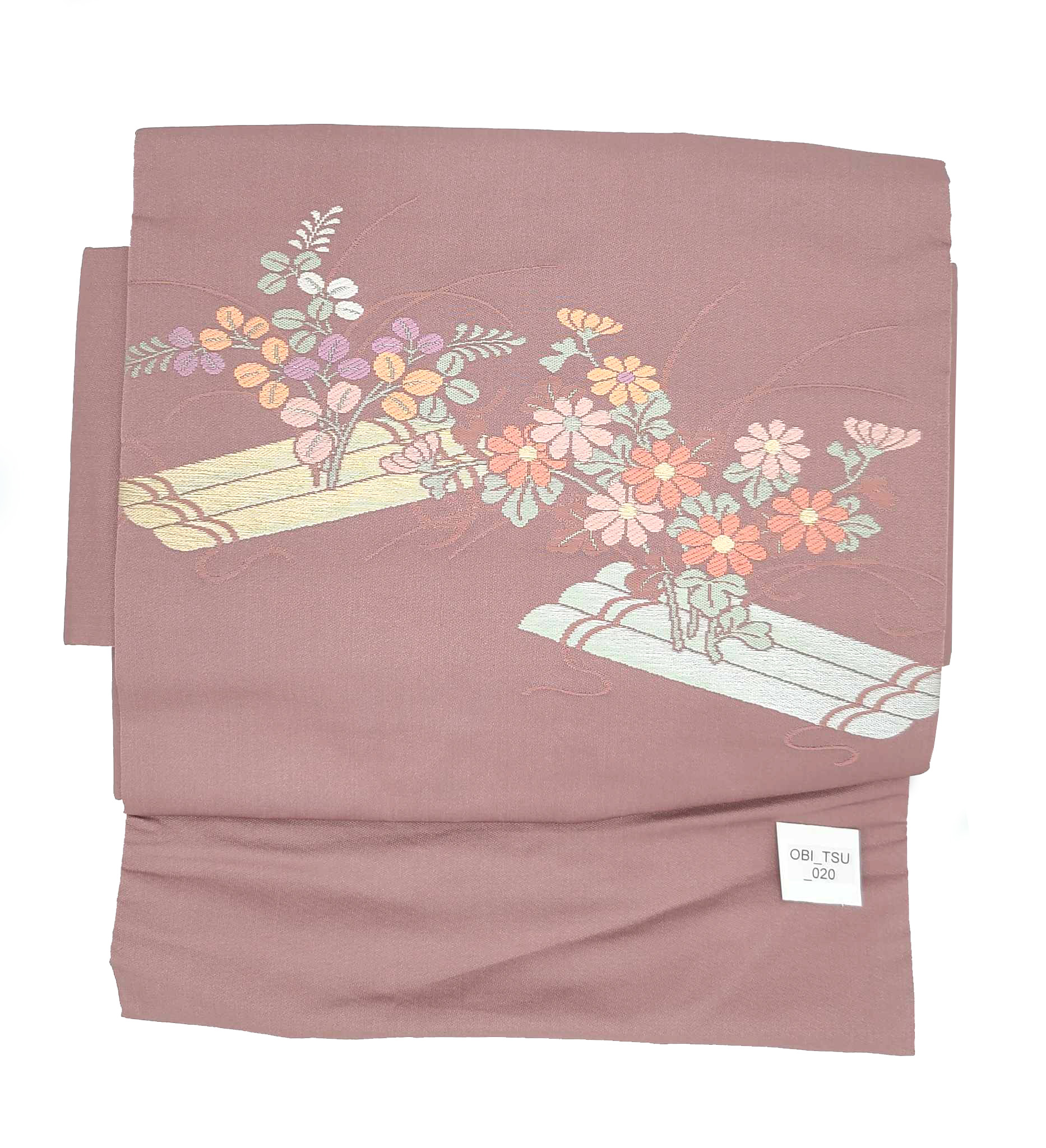 Pre-tied Otaiko Musubi Obi in Dusty Rose with Flowers