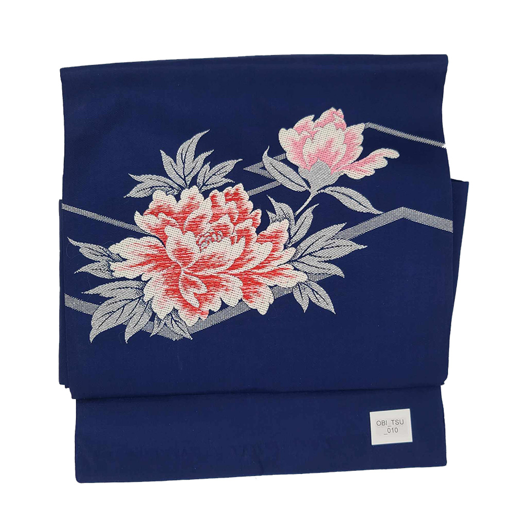 / Pre-tied Otaiko Musubi Obi in Navy Blue with Warm Florals