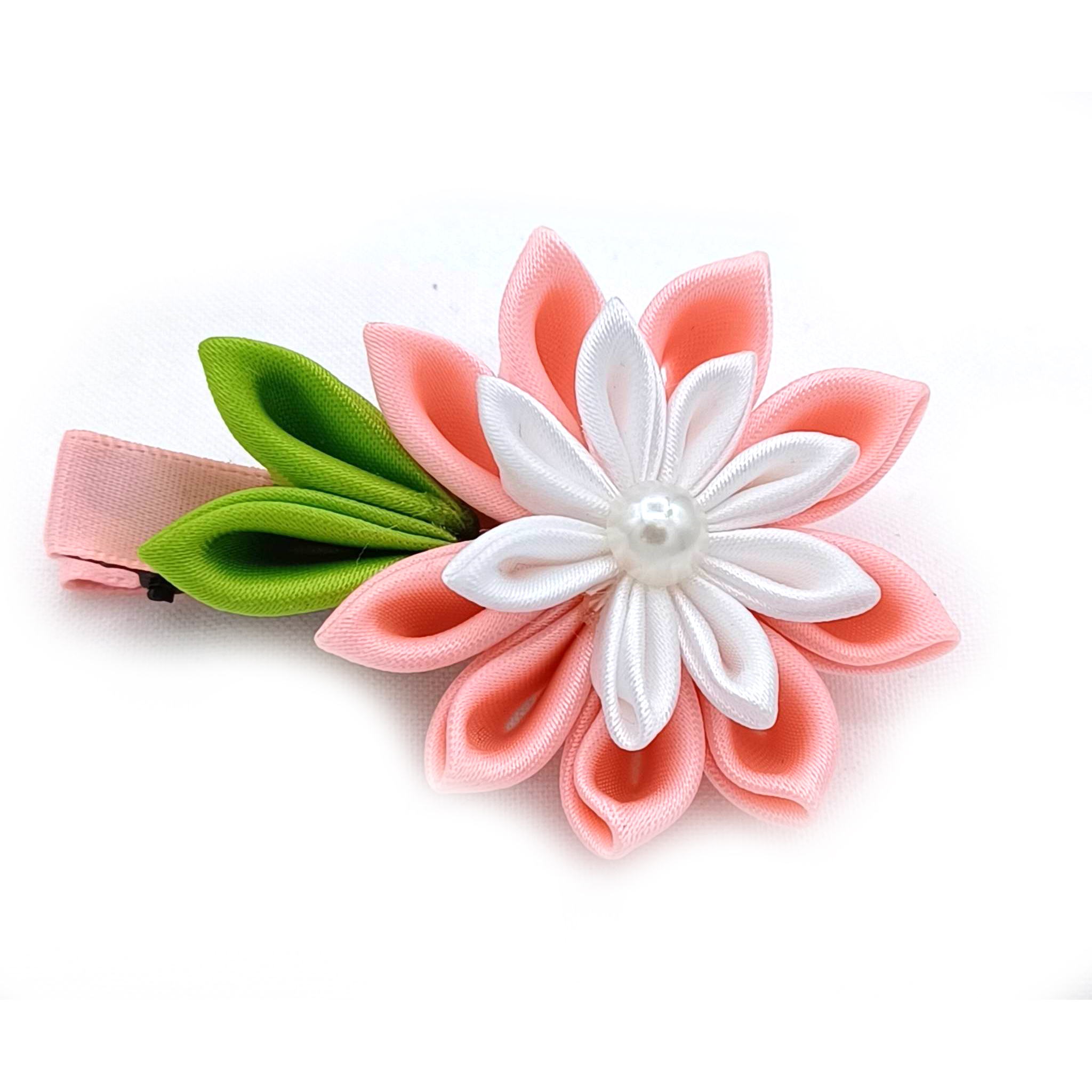 / Ribbon Kanzashi Hair Clip in Pink and White