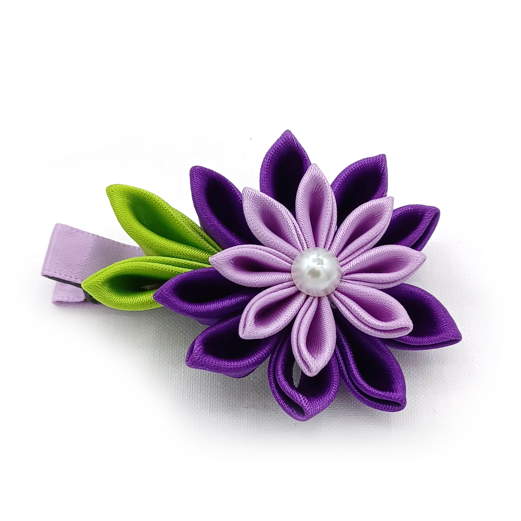 Ribbon Kanzashi Hair Clip in Purple Tones