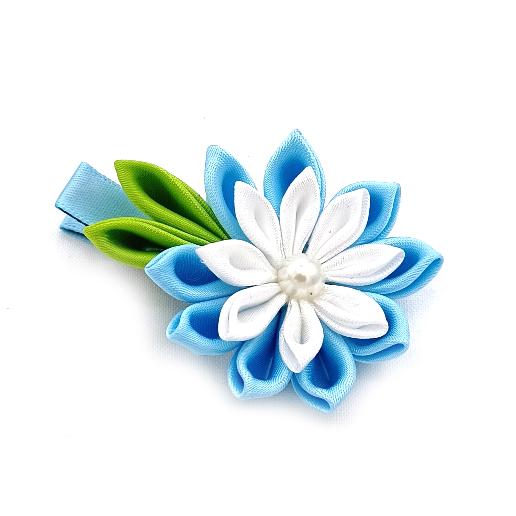 / Ribbon Kanzashi Hair Clip in Sky Blue and White