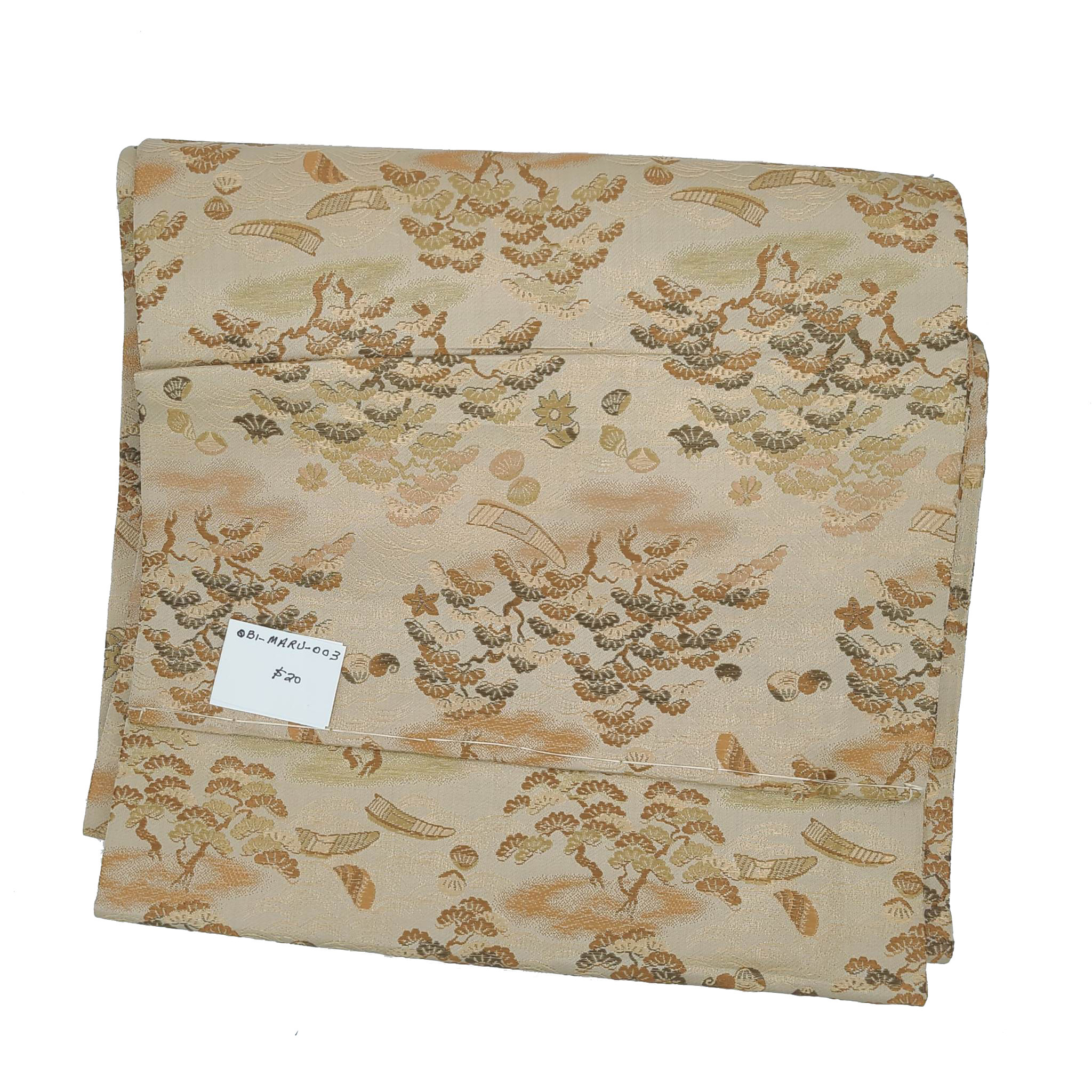 Rich, Colorful Pine, Peony, Mums, and Narcissus over Golden Waves Maru Obi