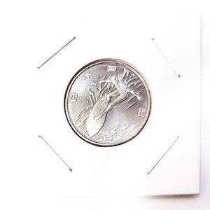 Tokyo Olympics 2020 Commemorative ¥100 Coin – Skateboarding. This coin comes from a 50-coin roll that we received from the Japan Mint. It is uncirculated and in near-mint to mint condition. Each coin comes protected in a cardboard flip holder with a plastic window, which allows the viewer to see both sides of the coin. Each coin was handled with gloves before placement in the flip.